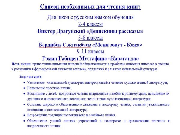 Акция "Читаю я, читаешь ты, читает вся карагандинская земля!"