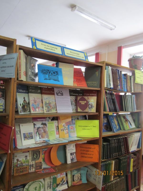В школьной библиотеке открылись выставки, посвященные знаменательным датам нашего государства – 70-летию Великой Победы и 550 Казахского ханства.