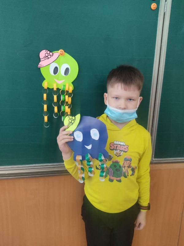 Сегодня в Творческой мастерской ребята делали поделку из бумаги. Получилось много ярких, красочных медуз.