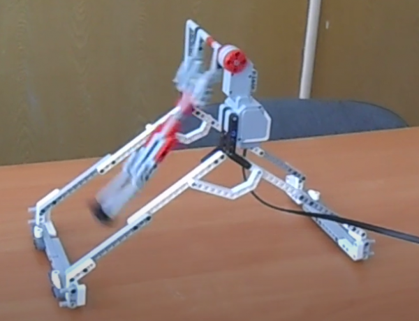 Ребята летней школы собрали Робота-акробата и с помощью программы задали ему три движения: