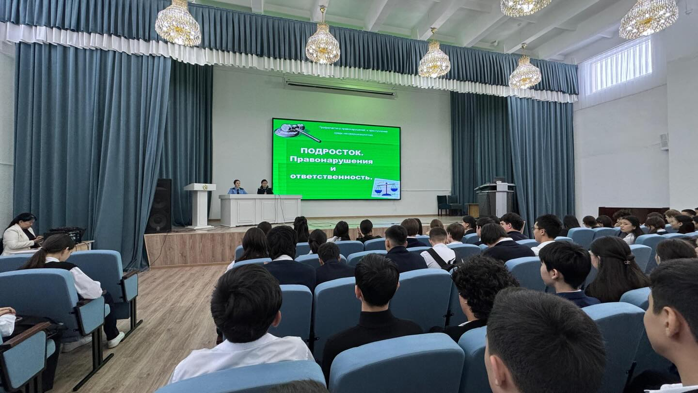 15.12.2025 ж. 9-11 сынып оқушылары арасында Оңтүстік-Шығыс ОП қызметкерлері Г.С. Жақаева, облыс прокурорының аға көмекшісі И.Ю. Құқық бұзушылықтар және жауаптылық"