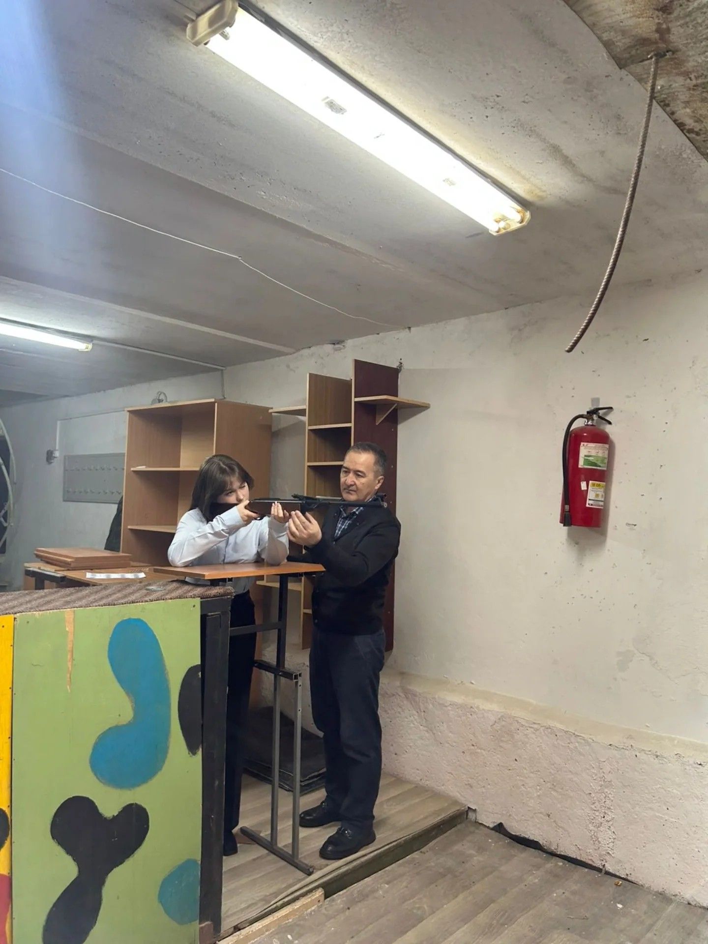 қыздар арасында мылтық атудан қалалық жарыс өткізіледі. 10б сынып оқушылары жарысқа дайындалу үстінде.