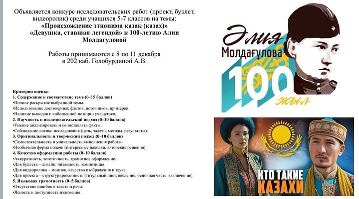 "Происхождение этнонима казак" "Девушка, ставшая легендой к 100-летию Алии Молдагуловой