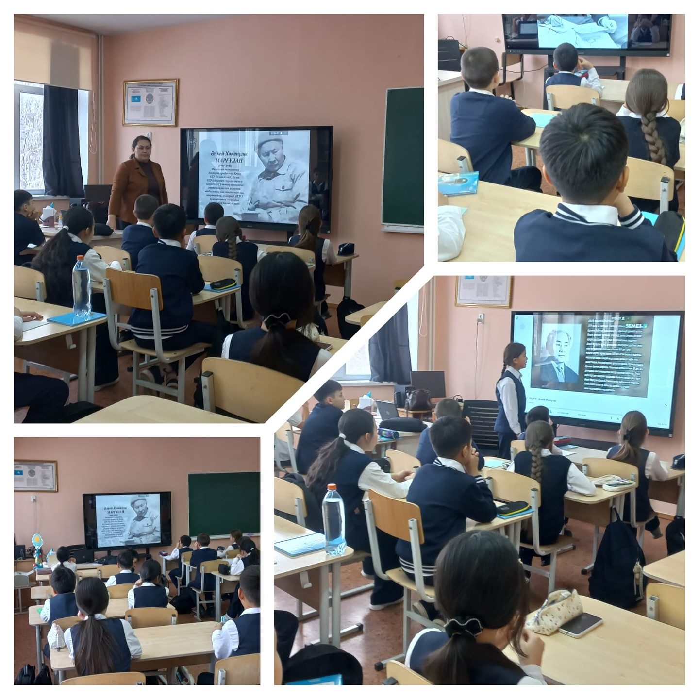 «Тарих толқынында» атты тарихи сауат ашу апталығы аясында М.К. Мусатаева 6а сыныбында «Әлкей Марғұлан - Қазақстан археологиясының негізін салушы» тақырыбына арналған сынып са…