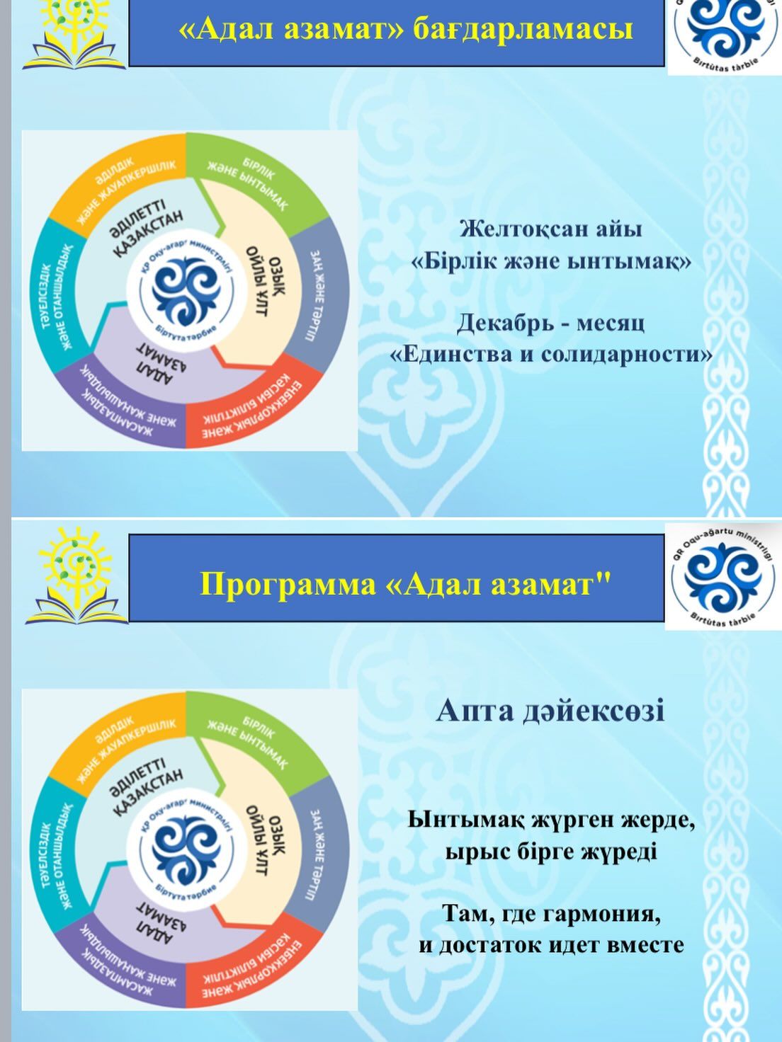 #АдалАзамат #бірлікжәнеынтымақайы #единствоисолидарность #goroo_krg #oqu_agartu_ministrligi #қарағандымектептері