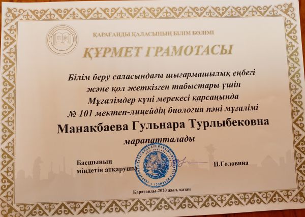 №101 мектеп-лицейінің «Жас Қанат» домбыра ансамблі, II Республикалық «Қосбасар» дистанционды фестиваль-конкурсында I дәрежелі Дипломға иеленді.