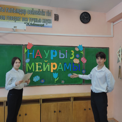 13.03.23 күні 8А сыныбында Ұлыстың Ұлы күніне орай "Үлкенге құрмет мерекесі" атты сынып сағаты өткізілді. Мақсаты: наурыз мейрамы туралы түсінік беру арқылы Қазақ халқының салт-дәсту…