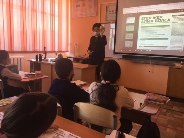 20 сәуірде 3А сыныбында "Егер жер алма болса.." деген тақырыпта сабақ өтті. Мақсаты: оқушыларды азық өсіру үшін жарамды жердің жетіспеушілігі туралы проблемамен таныстыру, жалпы сыныптық п…