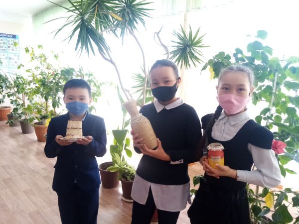 "Мен - еріктімін" акциясы аясында оқушылар тұрмыстық қалдықтарды пайдаланып, әр түрлі қажетті бұйымдар жасады. Оқушылар қолданыста болған заттардың кәдеге жарайтынына көз жеткізді.