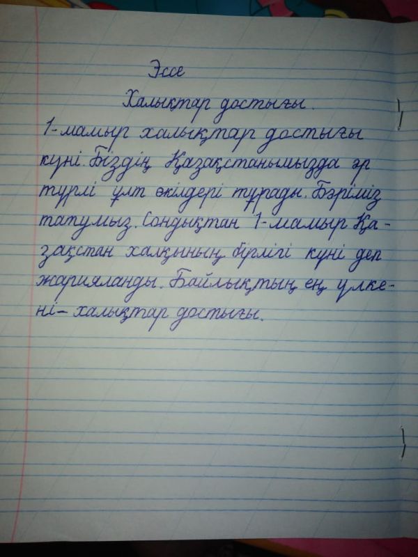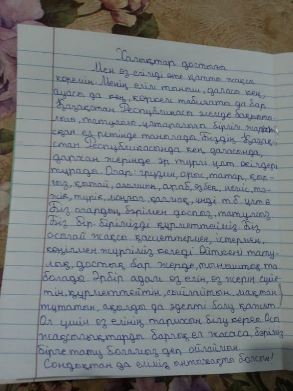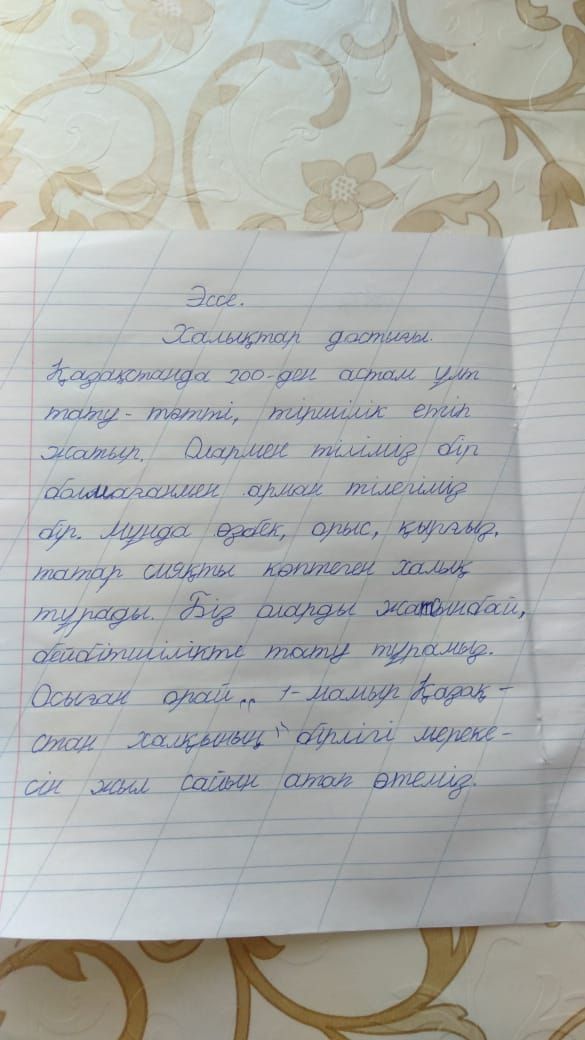 27 сәуірде № 17 ЖББОМ 2 Ә сынып оқушылары арасында «Халық достығы», тақырыбында интернет-байқауы өткізілді. (сынып жетекшісі: Турганбаева Э. С.)