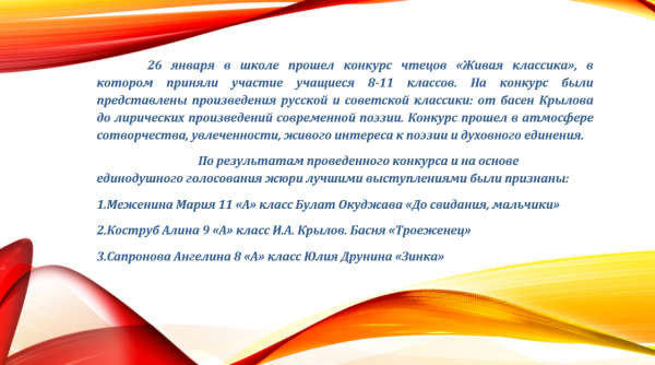 4 ақпан күні бастауыш сынып мұғалімі Билялова Клара Зейнекбаровнаның ұйыдастыруымен 4 сыныптар арасында «Руханилықтың мөлдір бұлағы» тақырыбында сурет сайысы өтті. Оқушылар тақырыпқа сай…