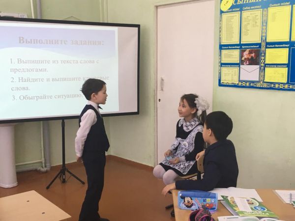 Учащиеся 3 А класса СОШ №17 провели открытый урок по русского языка на тему: "Мы идем в театр!". Учитель русского языка и литературы Назгуль Жанабаевна