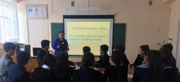 11.09.18 күні тілдер апталығы қарсаңында, Ахмет Байтұрсынұлының туған күніне орай "Тіл білімінің бастауы - Ахмет" деген тақырыпта, 9-11 сынып оқушылары арасында дөңгелек үстел өткізі…