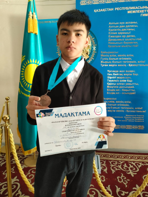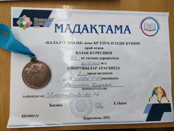 7А сынып оқушысы Есімхан Дархан "Балалар жылы" және "ҚР Тәуелсіздік күніне" орай өткен қазақ күресінен 2009-2010 ж.т спортшылар арасында ІІІ орын алғаны үшін марапатталды. Жетекш…