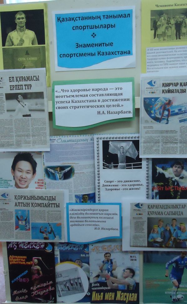 Дене шынықтыру және эстетикалық бағыттағы әдістемелік бірлестігінің апталық аясына орай мектеп кітапханасында «Қазақстанның танымал спортшылары&raq…