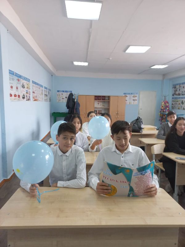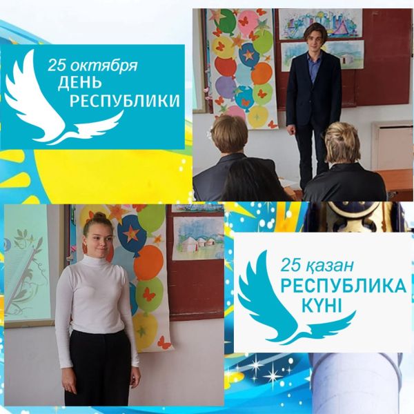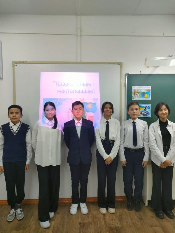 25 қазан "Республика күні"мерекесіне орай 2-б сыныбында "Қыран елім-Қазақстаным" деген диктант өткізілді. Мақсаты:Отанға деген сүйіспеншіліктерін ояту,елін,жерін қадірлей білуг…