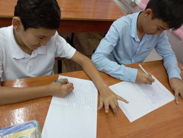 Бастауыш 2-4 сыныптан арасында 25 қазан Қазақстан Республикасы күніне орай диктант жазылды.Мақсаты: Отанға деген сүйіспеншіліктерін ояту,елін жерін қадірлей білуге үйрету.