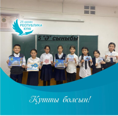 Республика мерекесіне орай 4"ә" сынып оқушыларымен "Қазақстан- менің мақтанышым" тақырыбында сынып сағаты өткізілді.