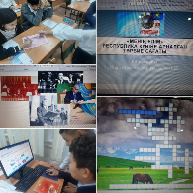 25 қазан - Республика күніне орай, 7 А сыныбында "Қазақстан - ұлы дала елі" тақырыбында тәрбие сағаты өткізілді. Мақсаты: оқушыларға Республика күнінің маңызын түсіндіру. Сынып жетекшісі:М…