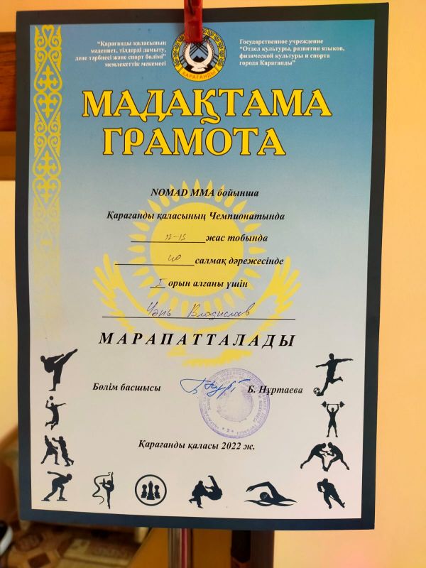 Чэнь Владислав, ученик 6"В" класса, занял 1 место в соревнованиях по NOMAD MMA