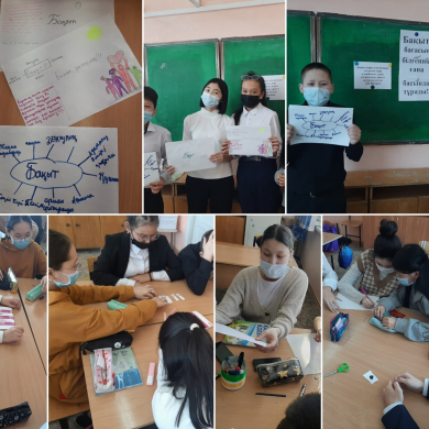9"А" сынып оқушыларымен "Өмірдің мәңгілік сұрақтары. Бақыт" тақырыбында сынып сағаты өткізілді. Оқушылар "Бақыт" туралы өз ойларымен бөлісіп, пікір таластырды.