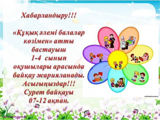 Начальная школа приглашает всех желающих принять участие в конкурсе рисунков на темы: «Правовой мир глазами детей», »Я рисую мир», «Мои права», «Разноцветны…