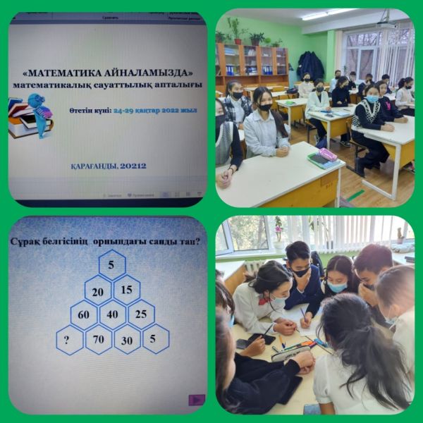 25 қаңтар күні 9"А" сынып оқушыларымен математикалық сауаттылық апталығының жоспары бойынша "Математика адам өмірінде" атты сынып сағаты өткізілді.