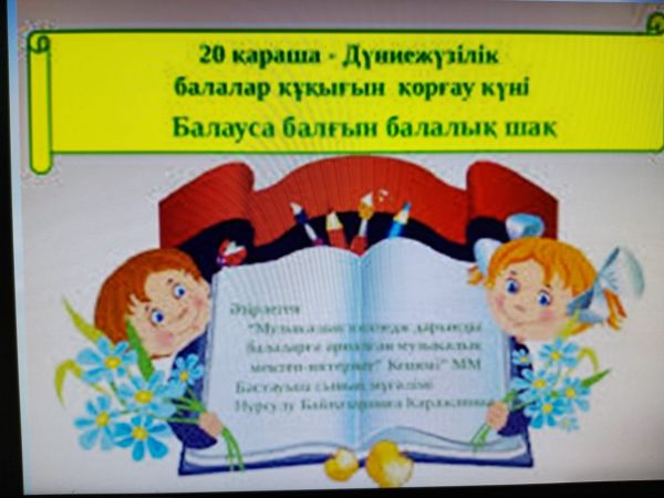 19 қараша бастауыш сыныптар арасында "Бала құқығы"туралы ҚР заңын таныстыру барысында әрбір бала білу құқылы тақырыбында құқықтық оқу сағаты өтті.Мақсаты: Бала құқығы туралы конвенцияда ба…