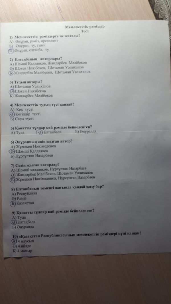 Құқықтық сауаттылық апталығы аясында 2 "а"    сынып оқушылары "Қазақстан Республикасының мемлекеттік рәміздері" тақырыбында тест тапсырмаларын орындады. Сынып жетекшісі…