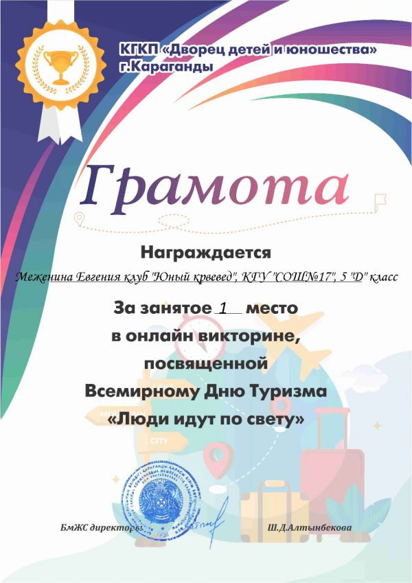 25 сентября 2020 учащиеся СОШ №17, члены клуба "Юный краевед", приняли участие в городской викторине "Люди идут по свету". Мероприятие было организованно   Отделом разв…