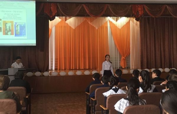 Бүгін №17 ЖББО мектебінде «Бір аймақ –бір кітап» облыстық акциясы аясында 5-7 сынып аралығында қазақ тілі мен әдебиетінің мұғалімі Мәлік Лаура мен кітап…