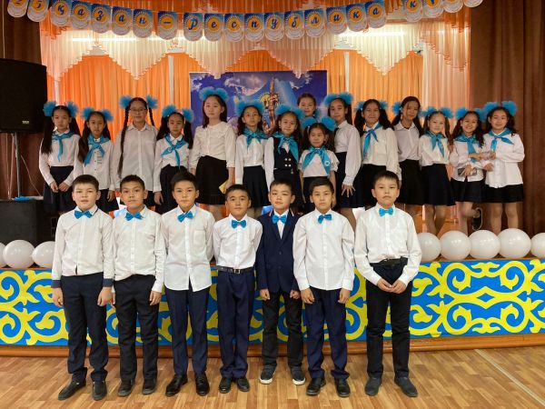 Учащиеся 4 "В" класса написали диктант посвящённый к Дню Республики Казахстан на уроке казахского языка.