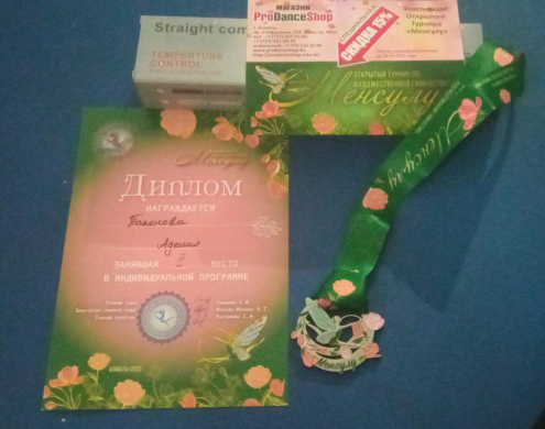 Спорстменка, умница и красавица из 5"Г" Такенова Аделия приняла участие в открытом турнире по художественной гимнастике "МЕНСУЛУ" и вернулась домой с наградой!!! ПОЗДРАВЛЯЕМ!!!