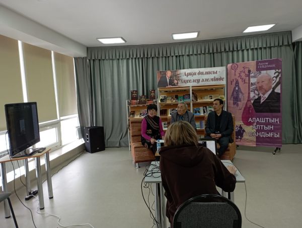 8"Ә",10"Ә" сынып оқушылары Н.В.Гоголь атындағы облыстық әмбебап ғылыми кітапханасы ұйымдастырған Ақселеу Сейдімбектің 80 жылдығына арналған «Алаштың Ақселеуі» әдеби а…