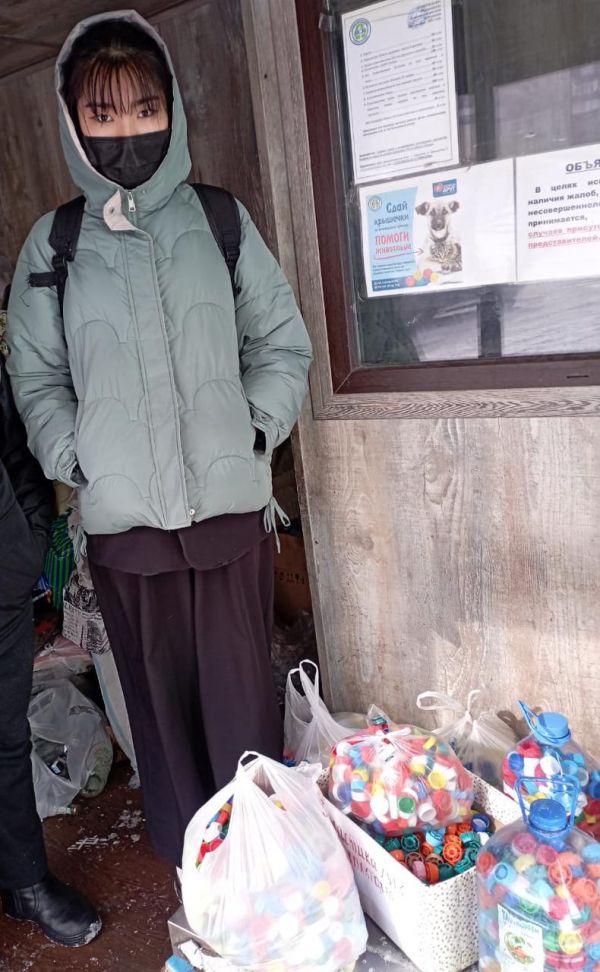 17 мектеп еріктілері "Қайырымдылық жасасаң, қайырымын өзің көресің"-"Помоги животным"акциясына атсалысып, үйсіз жануарларға көмек ретінде жинаған 9 кг пластик  қақпақтарды қ…