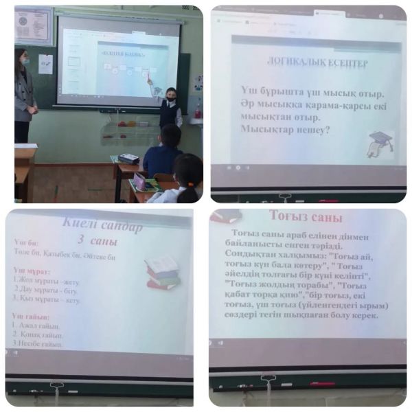 "Математика айналамызда" математикалық сауаттылық апталығы аясында 3а,3ә сыныптары арасында "Қызықты сандар мен фигуралар","Сандар кіммен дос?" тақырыбында интеллектуал…
