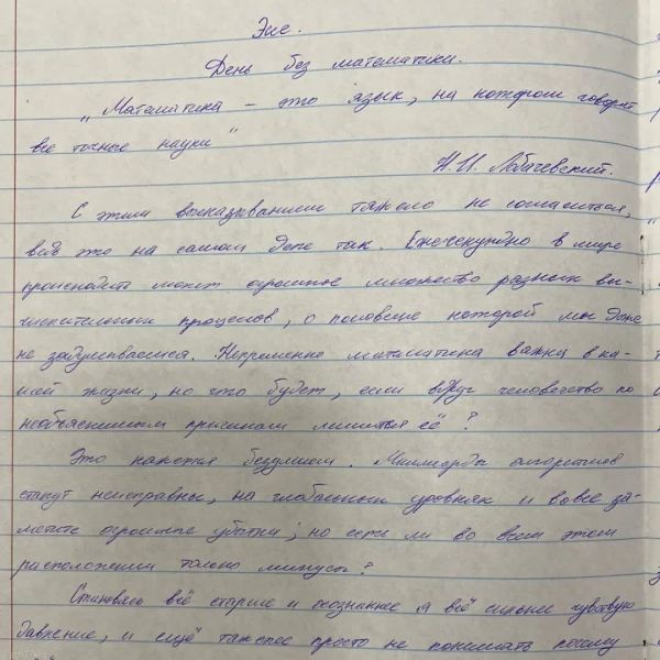 В рамках недели посвященной математической грамотности, в 11 А классе было написано эссе на тему: «День без математики».