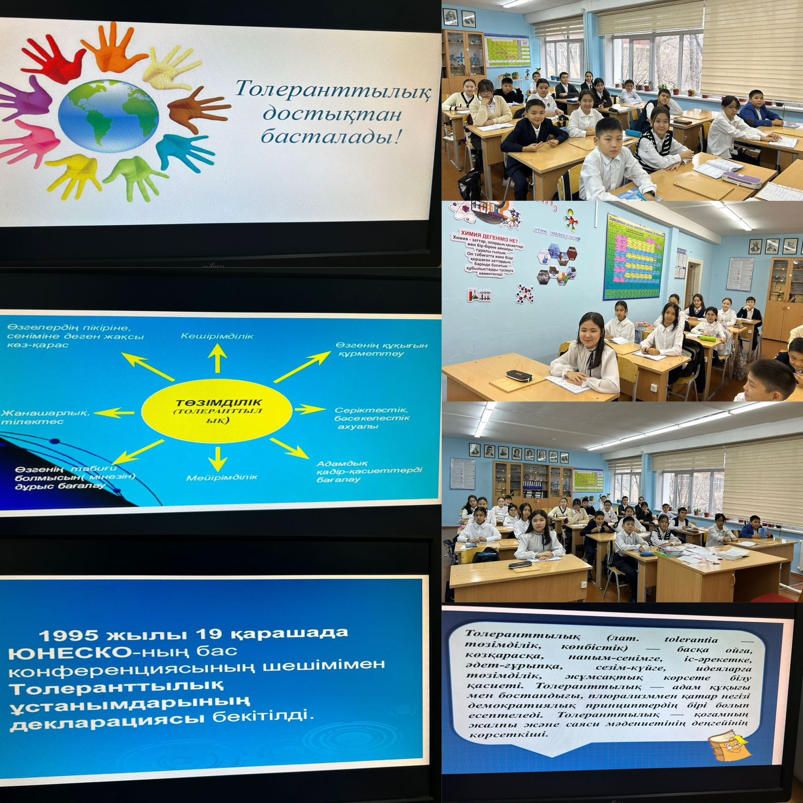 7 “Ә” сыныбында “Толеранттылық достықтан басталады” атты сынып сағаты өткізілді.
