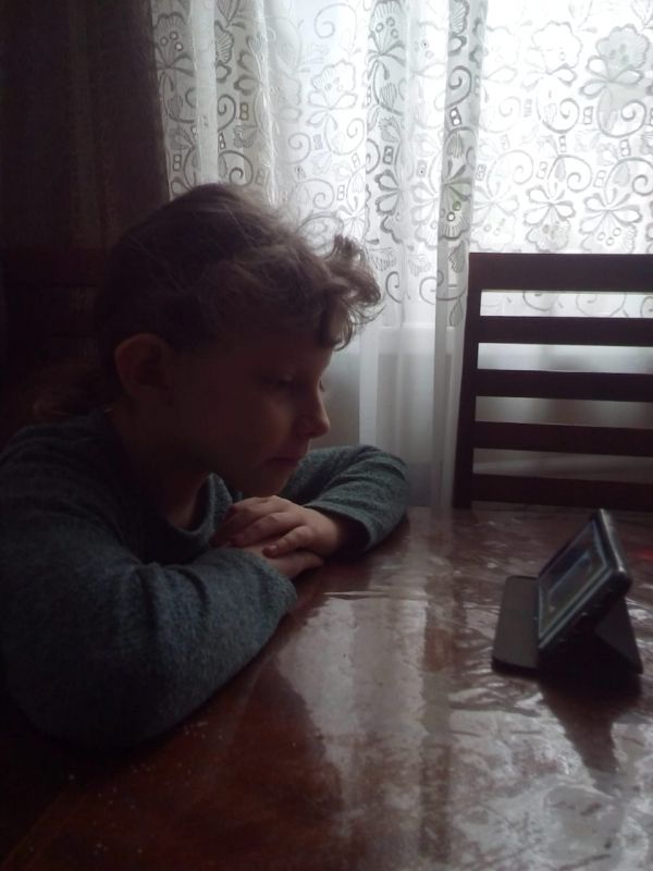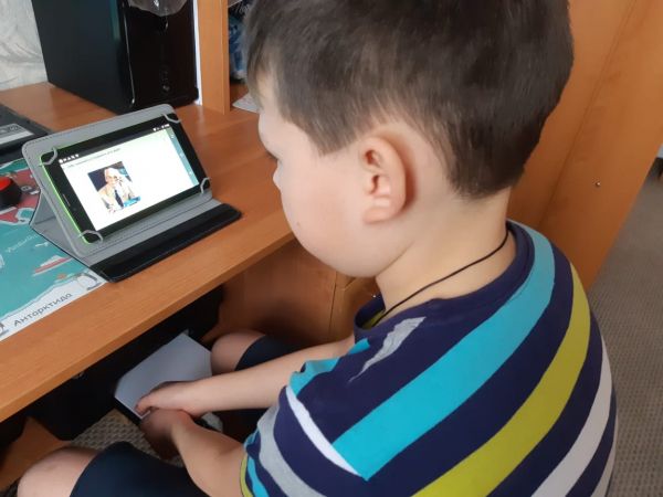 Учащиеся 3В и 4В классов за просмотром презентации  классного часа "Книга-учитель и друг" в рамках проведения недели читательской грамотности.