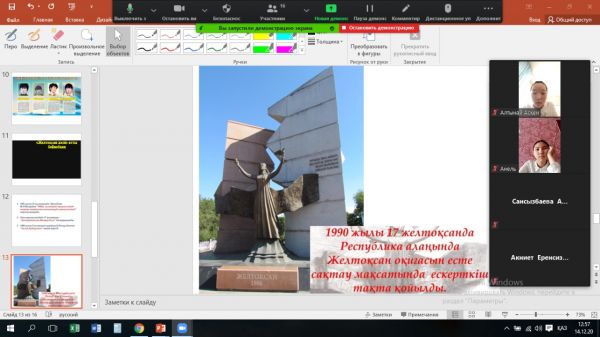 № 17 ЖББОМ 10 Ә сыныбында Қазақстан Республикасының Тәуелсіздік күні қарсаңында "16 желтоқсан Қазақстан Тәуелсіздігін жариялаған күн" атты сынып сағаты өтті. (Сынып жетекшісі Оралова А.А.)