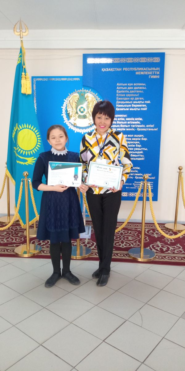 ILEADER.KZ Республикалық дарынды оқушылар порталының қолдауымен ұйымдастырылған жалпы республикалық байқауға қатысып, «Әлдилеген, ақ сүт берген анашым!» атты шығармашылық байқауда даралы…