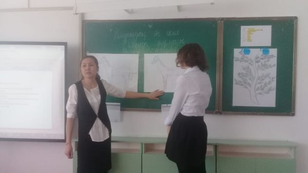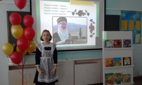 12.03.2019 ж. қазақ тілі мен әдебиеті пәні апталығында Марат Толқын Маратқызы 8 "Б" сынып оқушыларымен "Наурыз өлеңдері " атты ашық сабақ өткізді.