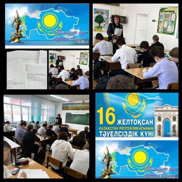 Бүгін 17 ЖББМ-нің 9г сынып оқушылары Тәуелсіздік куніне арналған "Тәуелсіздік -басты құндылығымыз" атты диктант жазды.