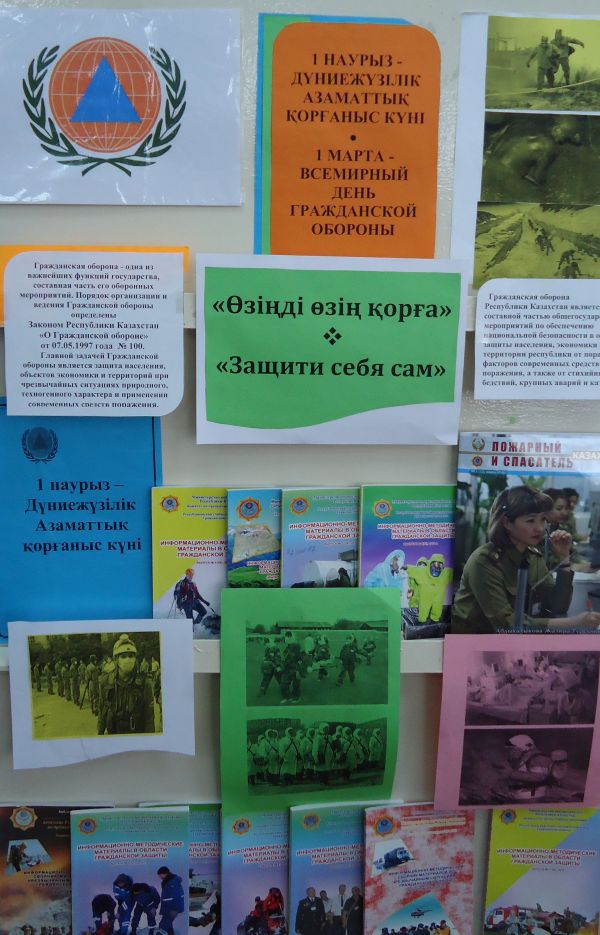 Бүгін 1 наурыз – Дүниежүзілік Азаматтық Қорғаныс күніне орай мектеп кітапханасында «Өзіңді өзің қорға» /«Защити себя сам» тақырыб…