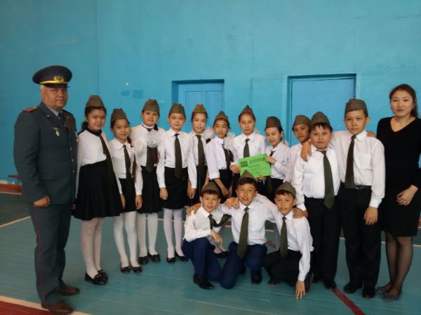 Смотр строя и песни, посвященный 25-летию Вооруженных сил РК, 72-годовщине Великой победы ВОВ среди учащихся 4-11 классов