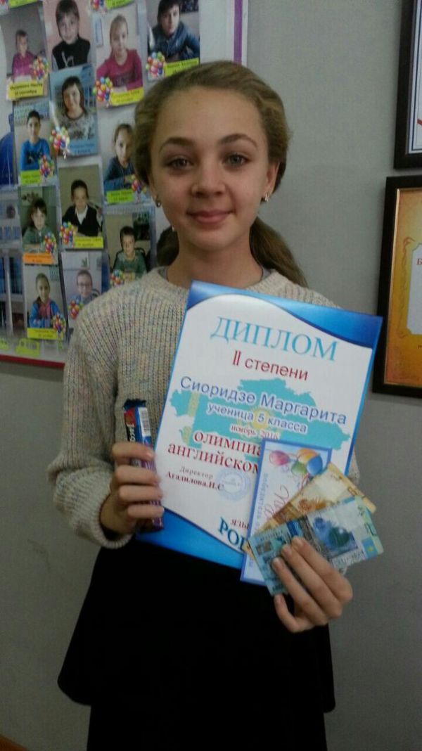 Поздравляем ученицу 5 «Б» класса Сиоридзе Маргариту за занятое II место в олимпиаде по английскому языку среди членов языкового клуба «Полиглот». Желаем новых побед и дост…