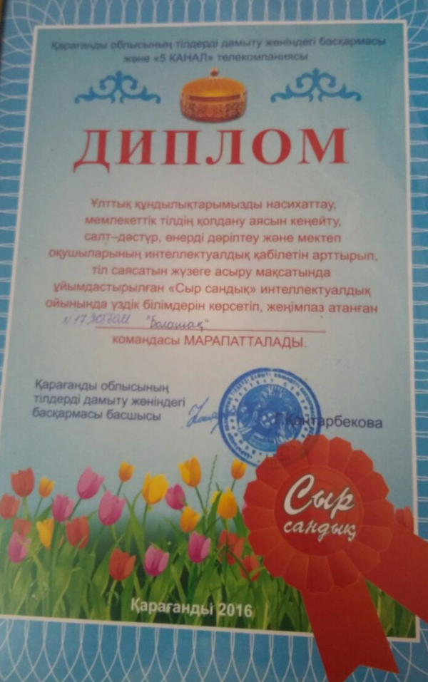 Тәуелсіздігіміздің 25 жылдығына орай Қарағанды облысының тілдер дамыту жөніндегі басқармасы және "5 канал" телекомпаниясы ұйымдастырған "Сыр сандық" интеллектуалдық ойынында ү…