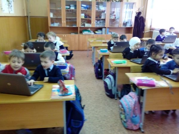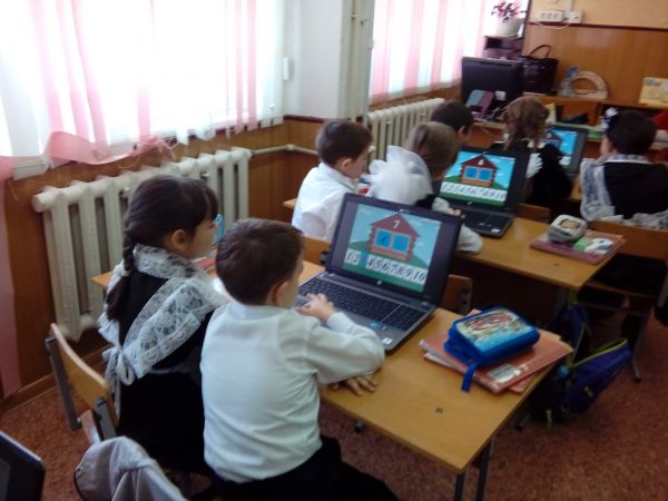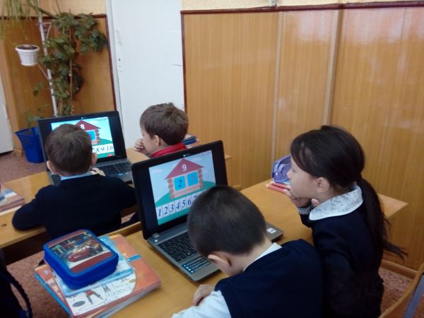 На уроках математики в 1В классе используют ИКТ при изучении состава чисел, составлении таблиц. в игровой форме дети хорошо усваивают трудный материал.