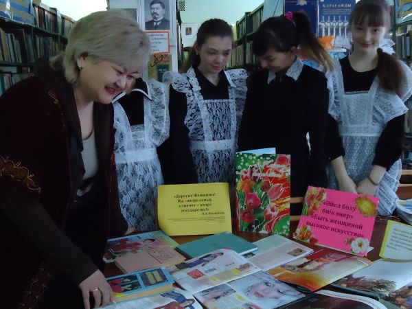 Мектеп кітапханасында  8 Наурыз  мерекесіне қарсы кітап көрмесі ұйымдастырылды.
