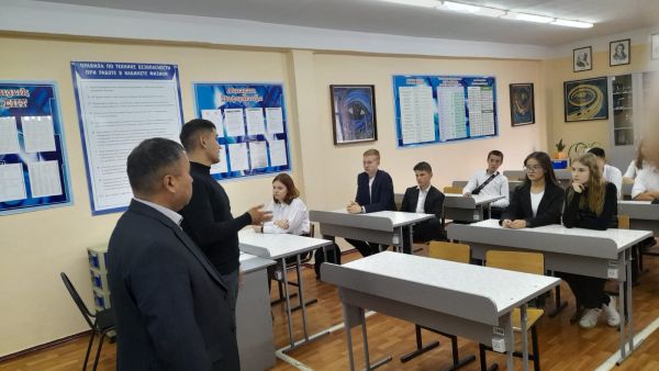 Кәсіби бағдар беру жұмыстары аясында, КАЗгиу университетінің арнайы өкілі мектебімізге келіп <ЖББМ-17>, 11"Ә" қазақ сыныбы және 11"А" орыс сыныбы оқушыларымен кездесу өткіз…